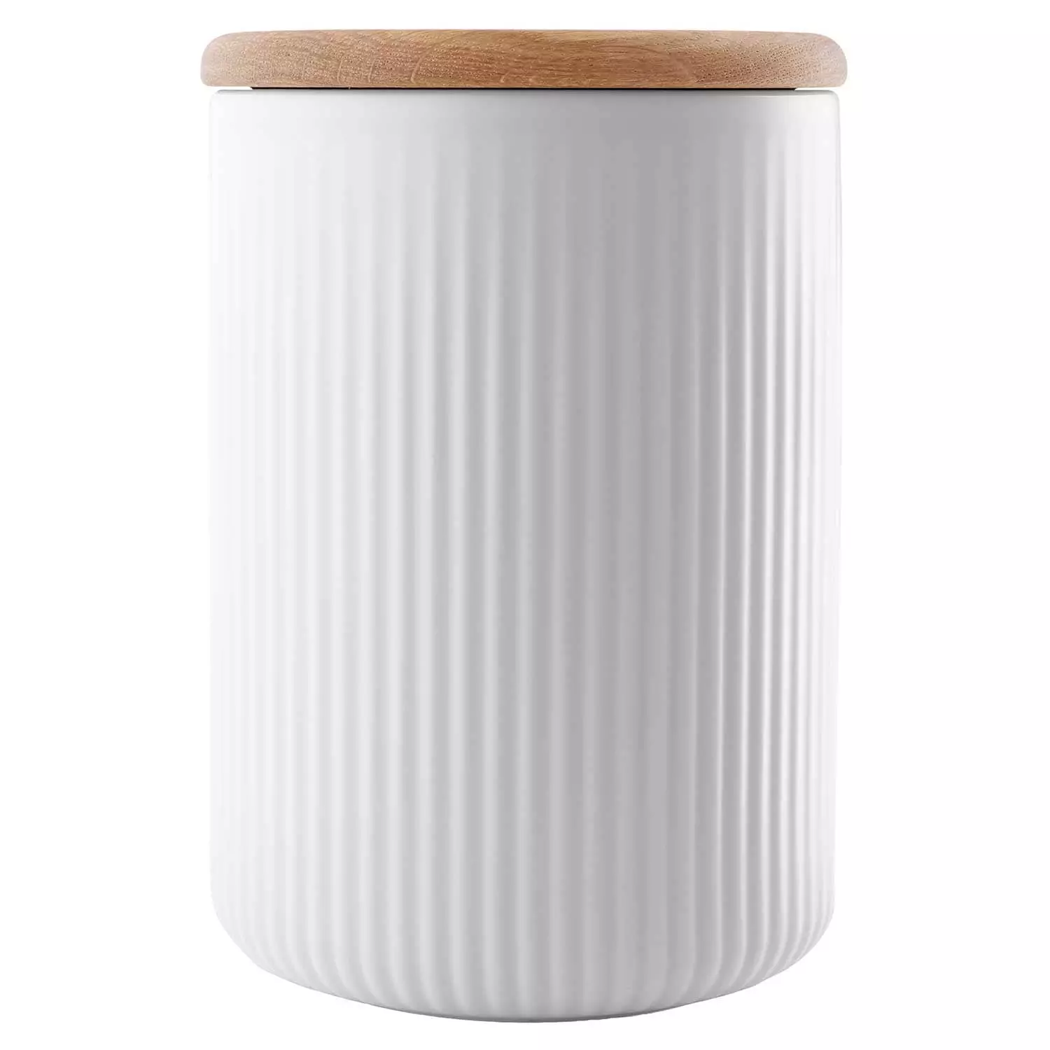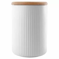 A beautiful and stylish storage jar from Eva Solo that belongs to the porcelain series Legio Nova. The series is designed by Ole Palsby and is characterized by its decorative grooves. The stylish design makes it to a nice interior detail while organizing in your kitchen. The jar is dishwasher safe, the lid in oak should only be wiped with a cloth.