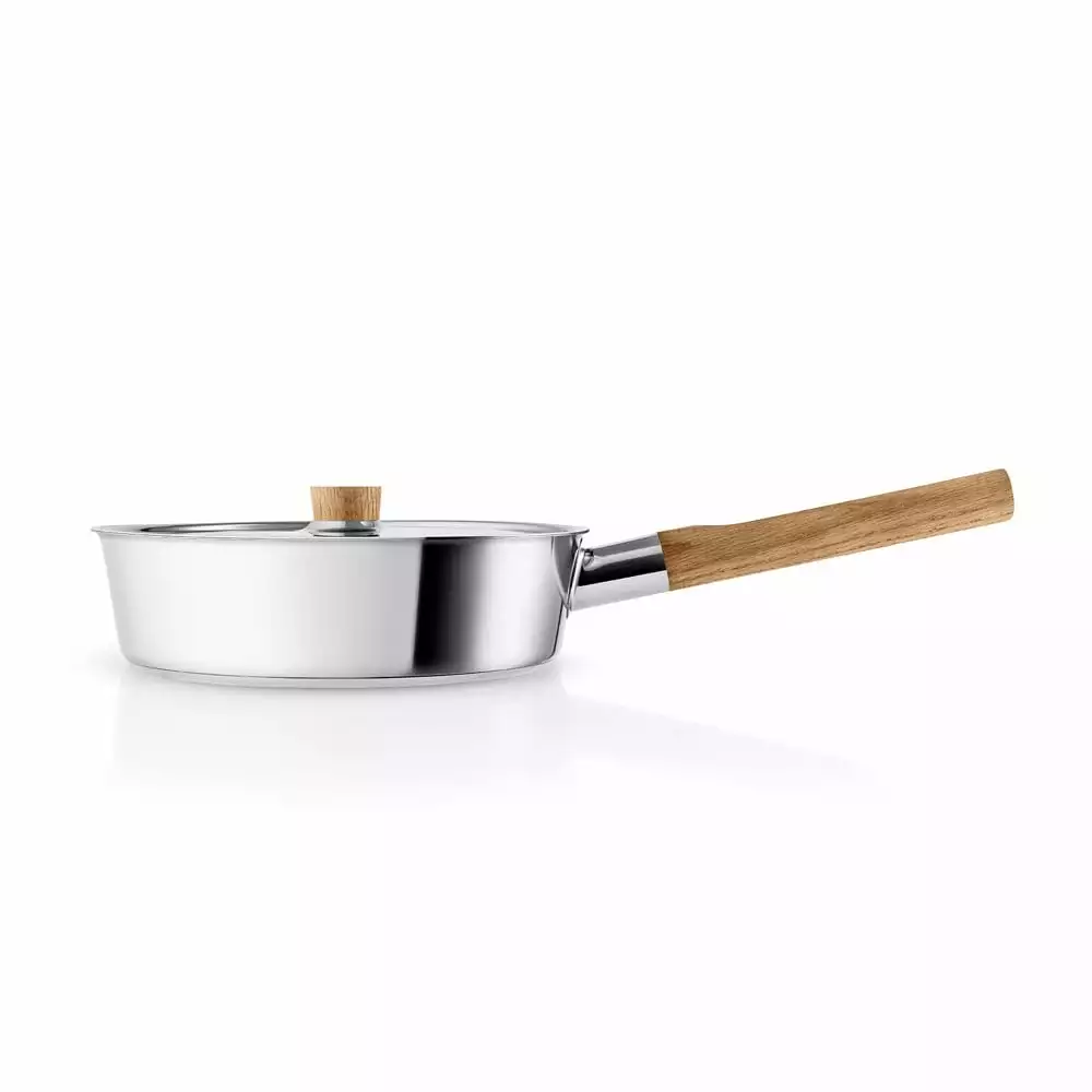 Nordic Kitchen sauté pan 24 cm from Eva Solo made of stainless steel. The Nordic Kitchen series combines design with functionality, which provides pots and pans suitable for everyday cooking as well as being part of the dinner service. The high edges avoids unnecessary waste and allows you to cook and sauté like a professional. The sauté pan is longwearing with its high quality stainless steel design. The handle made of oak gives a Nordic vibe with a stylish expression. Can be used on all kinds of heat sources including induction.
