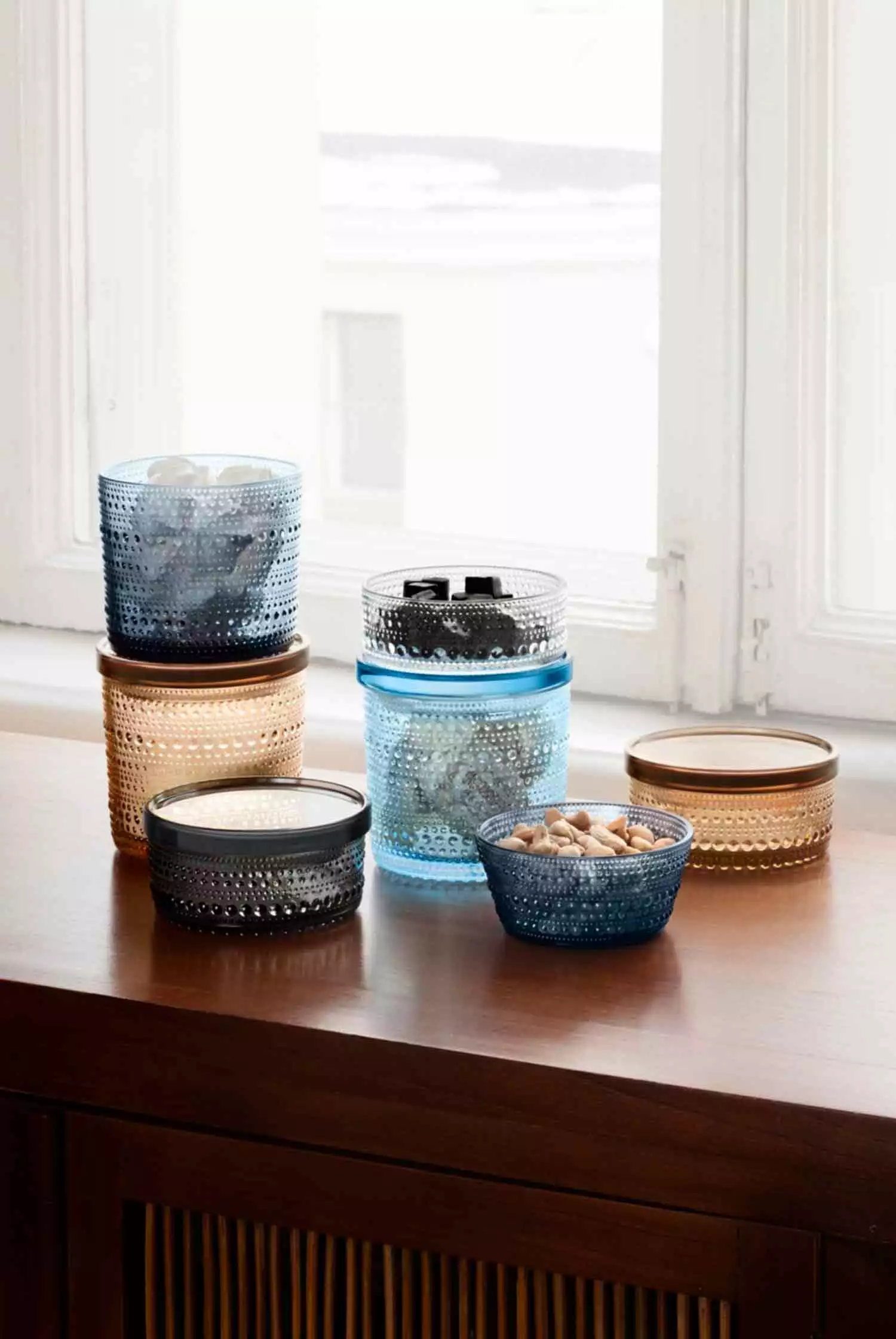 Kastehelmi jar from Iittala. This is a versatile glass jar with matching plastic lid that keeps the contents of the jar fresh. It belongs to the classic series Kastehelmi, which is one of Iittala’s most popular. Use as a decoration or as a storage jar of, for example, small items or dry goods in the kitchen. Designed by Oiva Toikka.