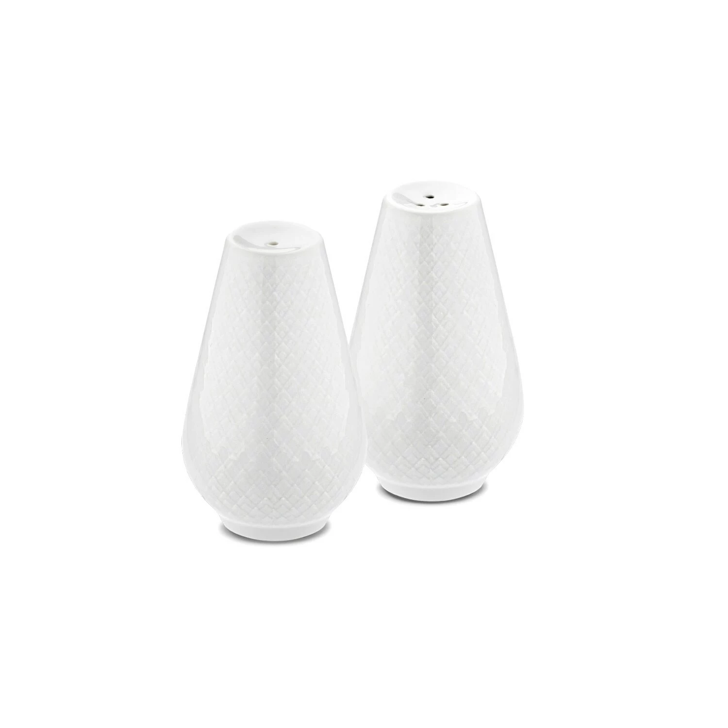 This salt and pepper set from Lyngby Porcelain belongs to the classic series Rhombe. The cone-shaped set is made of glossy white glazed porcelain with a beautiful rhombe pattern. The set is great for the breakfast and dinner table.