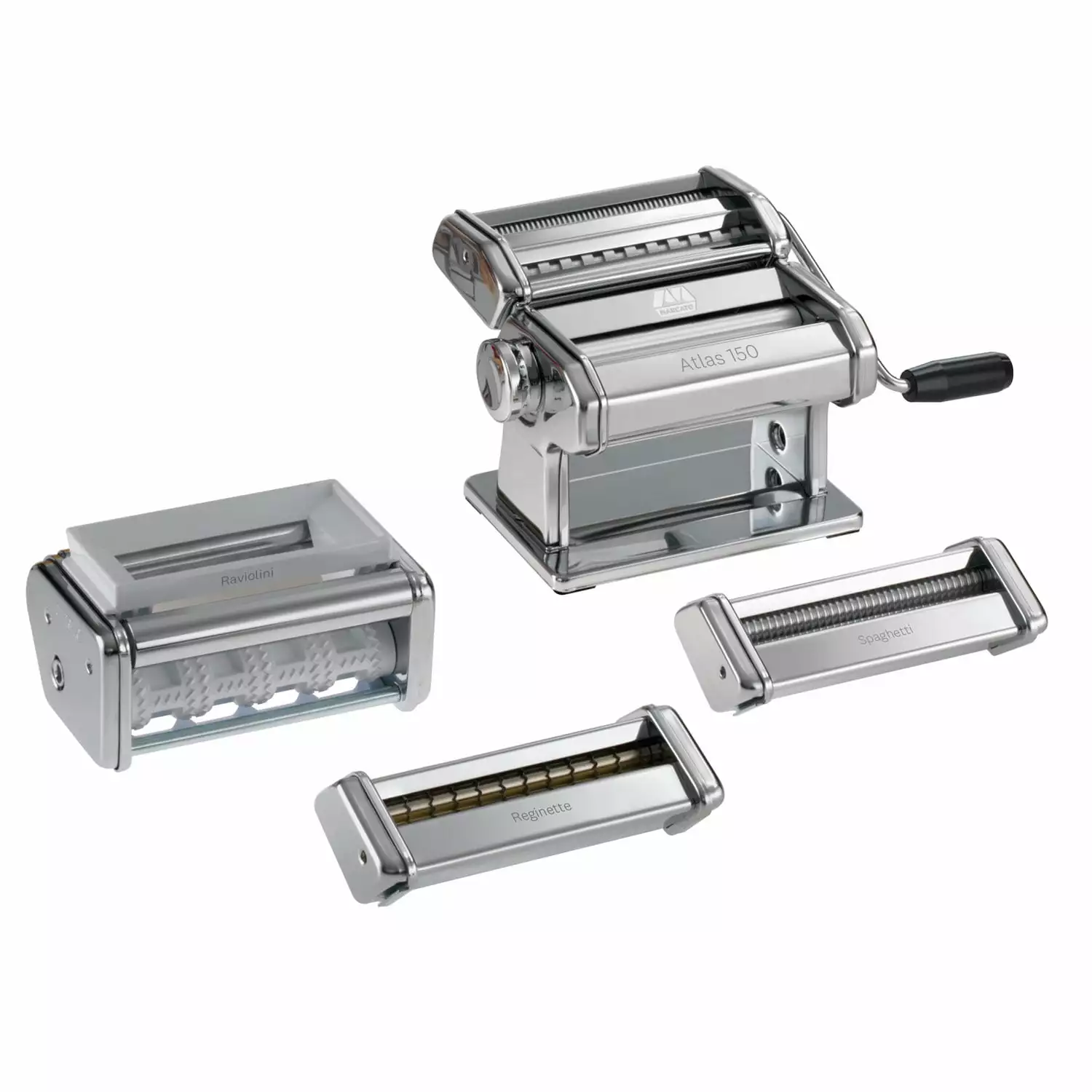 Pastaset van Marcato inclusief Atlas 150 pastamachine en accessoires voor raviolini, reginette en spaghetti.