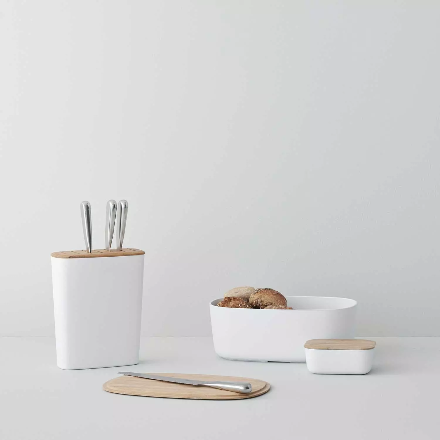 This knife block from RIG-TIG has a smart and stylish design that helps you store your knives on the best way. The block itself is made of melamine and stands firmly on the kitchen counter, and the top is made of bamboo with seven slots.