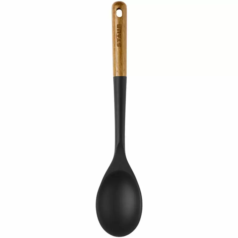 – Gemaakt van siliconen en acaciahout.