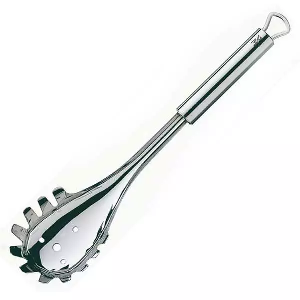 Profi Plus Pasta Ladle from WMF. Use the wide ladle to take spaghetti or noodles and serve on the plate. The ladle has small holes that let water disappear quickly and smoothly.